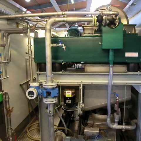 En détail, un décanteur HUNING LW 530 a été fourni avec une transmission hydraulique, en plus équipé de: système polymère, système de commutation et de contrôle et vis de refoulement pivotante. La centrifugeuse a été installée dans un conteneur isolé de 20 pieds comme caisse mobile. L'usine mobile était déjà prévue sur les premières usines de traitement des eaux usées et Wefels a pu commencer les travaux immédiatement après la livraison.